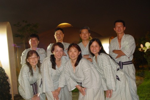 .jpg) 「阿蘇農莊」泡湯後攝於蒙古包前