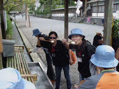 到達「阿蘇神社」喝水及拜拜前之淨手。(先洗左手、後洗右手)