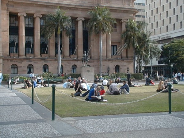 布里斯本市區觀光→市政廳外草皮 tea time時間
