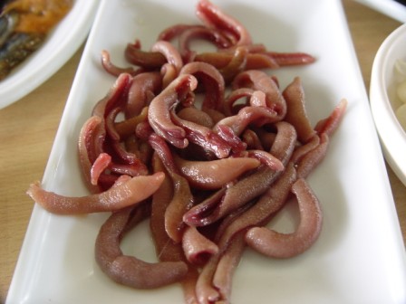 導遊切了一盤生海腸