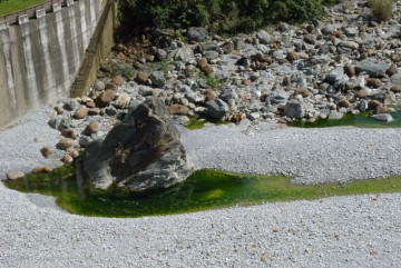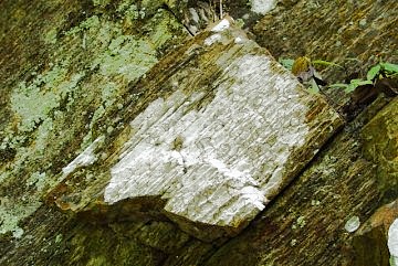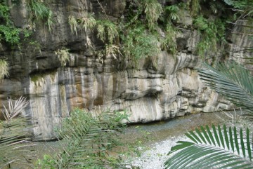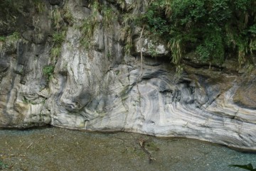 溪邊岩石出現直條紋理