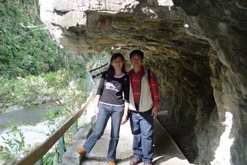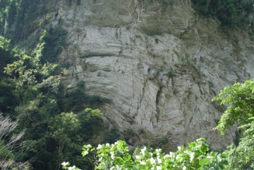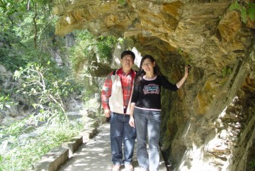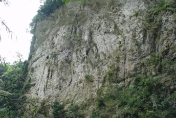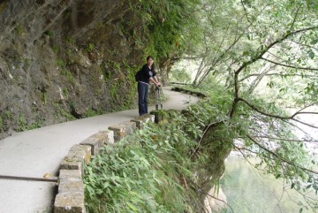 砂卡礑步道開鑿在峭壁下之明隧道