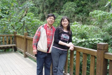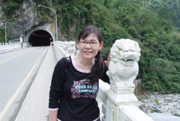 砂卡礑橋上與石獅合照